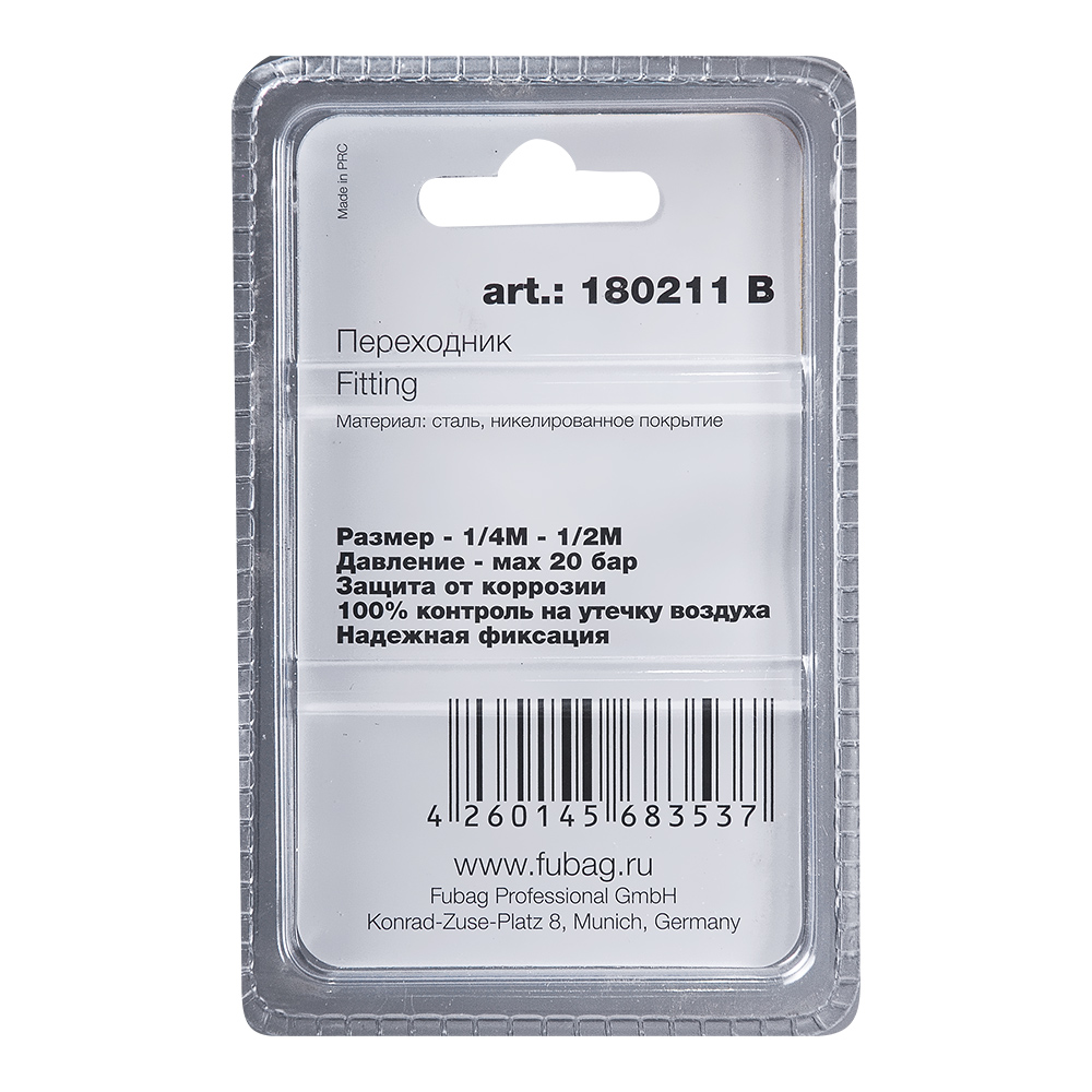 Характеристики FUBAG Переходник 1/4 дюйма М на 1/2 дюйма M, блистер 1 шт